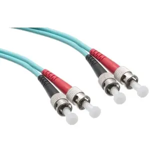 The AXIOM ST/ST 10G Multimode Duplex OM3 Fiber Optic Cable is designed for high-speed data transmission. This 15-meter cable conforms to TAA compliance standards, ensuring a reliable and efficient connection for data centers, telecom rooms, and network installations.