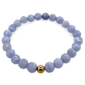 Add a touch of elegance to your jewelry collection with this stunning bracelet featuring beautiful Blue Lace Agate gemstones and luxurious 14K gold accents. Perfect for stacking or wearing solo, this piece is versatile and chic.