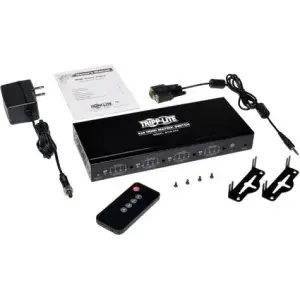 Tripp Lite B119-4x4 4x4 HDMI Matrix A/V Switch:A/V switch shares multiple HDMI sources between multiple monitorsSupports video resolutions up to 1920 x 1080 (1080p) at 60HzAllows any input to be routed to any outputPlug and play Tripp Lite B119-4x4 hdmi 4x4 matrix switchHDMI matrix switch includes remote and 3.5mm to dB9 adapter cableAccess the HDMI source using an IR remote or via the RS232 portEliminates the need to disconnect and reconnect HDMI sourcesEach source is accessible at all times