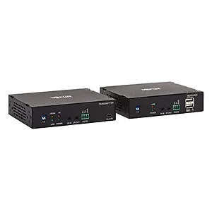 HDMI Extender for Digital Signage or Displaying Video in Schools or Trade Show BoothsThis complete transmitter and receiver system is recommended for video presentations in conference rooms, schools, trade shows, meeting facilities, houses of worship, retail settings and digital signage applications where the source and display are farther apart than conventional A/V cables allow. The B127F-1A1-MM-HH extends 4K video and stereo audio signals from an HDMI source device to an HDMI monitor up to 985 feet (300 meters) away via user-supplied duplex multimode LC fiber cabling.Transmits Crystal-Clear 4K HDMI Video with Multi-Channel Audio and 4:4:4 ColorThe B127F-1A1-MM-HH supports Ultra HD video resolutions up to 3840 x 2160 (4K x 2K) at 60 Hz with full, rich uncompressed DTS-HD, Dolby TrueHD and uncompressed 7.1-channel digital audio. Built-in equalization automatically fine-tunes the image quality at the remote display with no time-consuming manual fiddling needed. It's compatible with HDCP 2.2, HDMI 2.0 and EDID standards for carrying HDR (high dynamic range) signals. It also supports 4:4:4 chroma subsampling for top-level PC gaming or using your HDTV as a PC monitor.DIP Switches Extend Your Choice of USB, IR or RS-232 SignalsThe DIP switches on both the transmitter and receiver can be adjusted to let you choose from the USB 1.1, bi-directional IR and RS-232 functions. Only one function can be extended at a time.Plug-and-Play Operation for Quick Setup and Immediate UseThe included transmitter and receiver units work right out of the box with no software required. Mounting hardware is included for installing the units on walls, poles or 19-inch racks. Connect the transmitter to the source and the receiver to the display with HDMI cables (such as Tripp Lite's P569-Series). Then, connect a duplex multimode LC fiber cable (Tripp Lite N820-Series) to the built-in 10G transceivers on the two units.Local HDMI Port Allows Connection of an Optional DisplayConnect an optional display to the transmitter's local HDMI output to see the image connected to the receiver up to 985 feet away. The local port allows connection of displays with lower resolutions, such as 720p and 1080p, without affecting the 4K 60 Hz signal transmission to the receiver.TAA-Compliant for GSA Schedule PurchasesThe B127F-1A1-MM-HH is compliant with the Federal Trade Agreements Act (TAA), which makes it eligible for GSA (General Services Administration) Schedule and other federal procurement contracts.