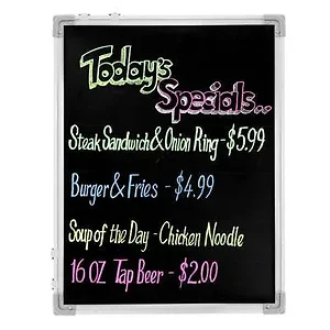 This dual-sided marker board offers versatility and convenience for all your writing needs. One side features a classic black surface, while the other showcases a bright white surface, allowing you to easily switch between styles to suit any presentation or instructional setting.
