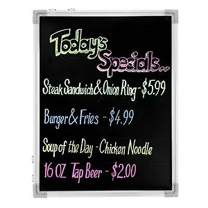 The Chef Master Large Reversible Marker Board offers a versatile solution for your writing and drawing needs. With a dual-sided design that includes both black and white surfaces, it allows for easy switching between different writing mediums. Perfect for classrooms, restaurants, or any space that requires clear communication.