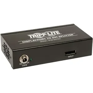 DisplayPort: YesDVI Out: YesNumber of DisplayPort Inputs: 1Number of DVI Outputs: 2Weight (Approximate): 1 lbPackage Contents: Displayport to 2 X DVI Splitter - 2 Port,Mounting Hardware,External Power Supply (Input: 100-240V, 50/60Hz, 0.5A; Output: 5V, 2A),Limited Warranty: 1 YearGet everyone's attention by broadcasting awesome messages in high definition video! With Tripp Lite's B156-002-DVI 2-Port DisplayPort 1.2 to DVI MST Hub, you can split or expand a single DisplayPort signal into two separate signals and display them on two HDMI monitors using standard DisplayPort (Tripp Lite P580-Series or P583-Series) and DVI (Tripp Lite P560-Series) cables. You can display the same image on each monitor, extend the desktop across them, or display in video wall mode where monitors are combined to display as one, enlarged monitor. The B156-002-DVI supports HD video resolutions up to 1920 x 1200 / 1080p @ 60Hz, 48-bit Deep Color (16 bits per channel), and is compatible with HDCP, EDID and DDC. When displaying in video wall mode, resolutions up to 1920 x 2400 (1x2) and 3840 x 1200 (2x1) are supported. It comes with an external power supply and brackets for wall-, rack- or pole-mounting. All mounting hardware is included. Compliant with the Federal Trade Agreements Act (TAA) for GSA Schedule purchases.