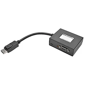 2-Port DisplayPort to VGA Splitter:Supports video resolutions up to 1920 x 1080 at 60HzIncluded USB micro-B cable supplies power to unitWorks with all operating systemsCompact enough for easy carrying in backpack or laptop bagPlug and play, no software or drivers requiredIdeal for offices, conference rooms, trade shows and classroomsBuilt-in DisplayPort cable connects to sourceSave money on new DisplayPort displays or docking stationsComplies with HDCP, EDID and DDCLEDs indicate whether splitter is powered on and transmitting signal to connected displaysIncludes:B157-002-VGA 2-Port DisplayPort to VGA SplitterUSB micro-B cable, 3'Owner's manual