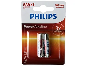 Philips Power Alkaline AAA Batteries provide reliable and long-lasting power for all your everyday devices. Designed to meet high standards of performance, these batteries ensure your devices operate efficiently. Perfect for remote controls, toys, flashlights, and more, the Philips Power Alkaline AAA Batteries are your ideal power solution.