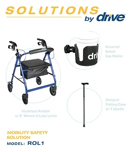 The Drive Medical Rollator in blue features a stylish design and practical functionality. It is equipped with a removable and adjustable back support, making it a versatile option for both indoor and outdoor use. The lightweight frame and compact design allow for easy transport and storage.