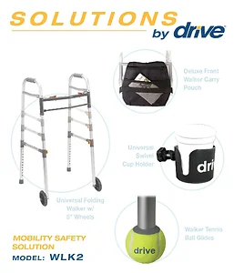 This Deluxe Folding Walker by Drive Medical is designed for both adults and juniors, providing a sturdy support system to aid mobility. Featuring a lightweight aluminum construction, this walker is easily adjustable to fit individual height requirements.