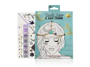 Bulk Buys BB748 Festival Metallic Tattoo Set with Hair Crown