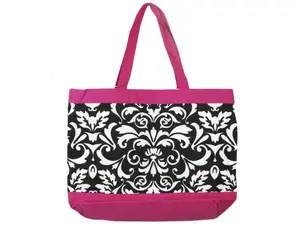 Bulk Buys BB782 Stylish Pink & Black Damask Tote Bag for Every Occasion