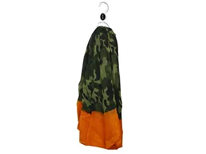 The scarf features a trendy green camouflage design with a vibrant solid orange border, ensuring you stand out in style.