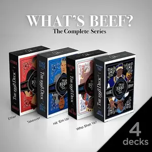 Experience the ultimate rap battle with our 'Beef Battle Decks' pack. This set features four iconic decks, each representing legendary diss tracks: 'Who Shot Ya', 'Ether', 'Hit 'Em Up', and 'Takeover'.