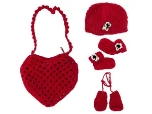 Each bag includes a pair of toddler booties, fingerless mittens, and a cozy beanie, making it an ideal gift for any occasion. The bag features a secure zip closure and is crafted from soft red yarn, ensuring comfort and style.