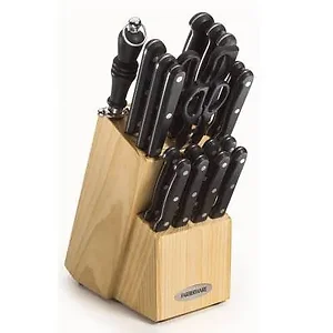 The Farberware Traditional 20-piece Cutlery Set is a comprehensive kitchen toolset that equips you with essential cutting instruments for any culinary task. Crafted with high-quality stainless steel blades, this set ensures precision and durability, making food preparation easier and more efficient.