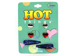 Bulk Buys BI129 Set of 3 Pairs Metallic Heart and Purple Hair Clips