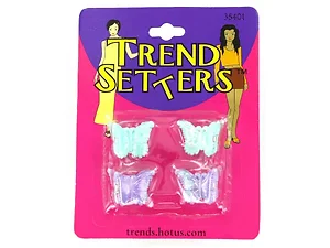 Add a pop of color to your hairstyle with this delightful set of butterfly clips. Made from metallic plastic, these clips offer a shiny, girlish accent that will brighten your look. The durable plastic ensures they withstand regular use, making them a perfect accessory for everyday style or special occasions.
