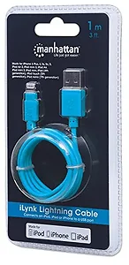 Manhattan 391467 3 FT Blue Lightning Cable - Fast Charging & Data Sync