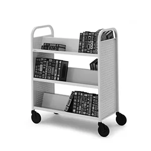 The Bretford Book Utility Truck is designed for easy transportation of books and supplies. With three spacious shelves, it provides ample storage for a variety of items. The durable design, combined with 5-inch casters, ensures smooth mobility across different surfaces, making it an essential tool for libraries, classrooms, and offices.