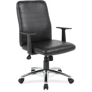 Retro task chair features a heavy-duty, ribbed vinyl upholstery to provide an extremely durable seating option that also cleans easily. The T-arms make comfortable and natural armrests while maintaining a minimalist appearance. Pneumatic gas lift allows easy seat-height adjustments to help you find the personalized sitting style that suits you and your work environment. Spring-tilt mechanism allows you to change the angle of the entire seat relative to the floor and to transfer some of your upper body weight to the backrest of the chair. The 25" chrome base offers extra stability to the chair by spreading the load over a larger surface area to help prevent tipping. Hooded, double-wheel casters slide smoothly on floors to make it easy to move and shift directions. Tilt tension control allows you to increase or decrease the tilt tension to accommodate your body weight. Upright locking position provides comfortable back support. Task chair supports up to 275 lb.