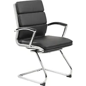 Executive guest chair features a stylish design to add a pop of modernism to any room or office. CaressoftPlus upholstery gives you an ultra-soft seat that's both breathable and durable. This trademarked vinyl looks and feels like leather yet cleans easily with just a damp cloth. Fixed, padded arms are ergonomically designed to provide extreme comfort through extended use. Sleek cantilever base keeps this chair modern to blend seamlessly into most rooms. Guest chair supports up to 275 lb.