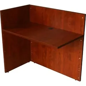 Reception return in rich, lustrous cherry is intended for use only with the Boss Reception Desk Shell (sold separately). Reversible design allows it to be functional in either right-handed or left-handed applications. Thermal-fused melamine with 3mm PVC edgebanding provides excellent durability and scratch-resistance. It comes with a 1" thick tabletop that provides a sturdy surface that will require little maintenance. 3" round grommets on all worksurfaces allow easy cable and wire management and are compatible with Boss power grommets (sold separately).