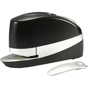Impulse 20 Executive Electric Stapler features fast, reliable electric stapling. Impulse Drive technology allows stapling in just a fraction of a second and features No-Jam technology to prevent staple jams. Extra-wide paper lead-in and adjustable paper stop deliver consistent stapling at 45-degree or 90-degree angles for easier repetitive stapling. Refill alert light indicates when staples are needed. The FastLoad push-button, staple reloading system makes it simple. Staple storage compartment conveniently keeps extra staples on the unit for immediate refill. Push-style staple remover is removable from unit for easy access. Perfect for work, the home office or school, this electric stapler uses standard staples to fasten 20 sheets of paper at a time. Full-strip staple capacity accommodates 210 staples.