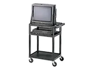 This versatile adjustable plastic TV cart is designed for various applications, including the display of TVs, overhead projectors, and VCRs. With a capacity to hold multiple devices, it offers flexibility in height adjustment and configuration. The cart's wheels provide mobility while ensuring stability, making it an ideal solution for both home and office environments.