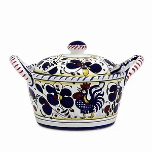 The Orvieto Rooster Butter Tray & Cheese Bowl is a charming piece that reflects the rich heritage of Italy's Deruta ceramics. Designed with the iconic 'Galletto' (Rooster) motif, this collection is inspired by the traditional Renaissance patterns from the historic hill-top town of Orvieto, Italy.