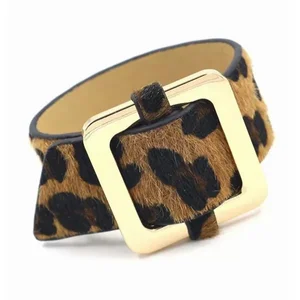 Scarves And Fedoras BR4001 Leopard Print Gold Buckle Statement Bracelet