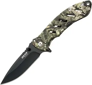Featuring a mossy oak camo handle and a durable stainless steel blade, this knife is both stylish and practical. Its lightweight design ensures ease of use, while the frame lock mechanism guarantees safety during operation.