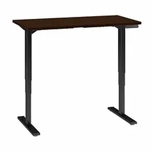 Move 80 Series Height-Adjustable Standing Desk provides a flexible, healthy and ergonomic solution for your work environment and integrates easily with other BBF products. Use as table, return or bridge. This desk accepts accessories including a keyboard tray and monitor arm. Height ranges from 24-1/2" to 50" high and operates at speed of 1-1/2" per second. It includes four programmable memory presets with a quiet, soft-touch start and stop. Thermally fused, Mocha Cherry laminate worksurface is scratch-resistant. Black base is made of welded 16-gauge, powder-coated steel. Weight capacity is up to 200 lb.