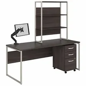 An ideal solution for the modern professional, Hybrid blends durable worksurfaces with sleek metal framework. Use to create stylish and quality work spaces for corporate or home offices with open table desks and functional storage. Open metal leg design and finished privacy panel allow the Hybrid Desks to look great facing any direction. Computer Desks feature built-in wire management. Coordinating file cabinets, storage cabinets and bookcases allow a cohesive office design. Commercial-quality design has undergone rigorous testing that meets or exceeds ANSI/BIFMA standards.