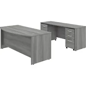 Product Name:Studio C 72W x 36D Bow Front Desk and Credenza with Mobile File Cabinets