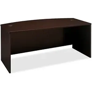 Expand your worksurface with this 72" wide bowfront desk shell in Mocha Cherry that offers a classic styling with clean lines and an extended modesty panel. It is constructed with 100 percent thermally fused laminate for durability and superior resistance to scratches and stains. Create an expansive corner workstation with any Bush Business Furniture Series C Collection Credenza or Return Bridge on the right-hand side of the desk. You'll enjoy the integrated wire management located within both desktop and leg grommets to conceal cables and keep your desk area uncluttered. Spacious design includes room for two-drawer or three-drawer mobile pedestals (sold separately) and can be customized with desktop accessories like a keyboard tray (sold separately) for convenience. Compensate for uneven floor surfaces with adjustable levelers.