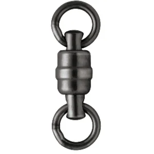Black Stainless Steel Heavy-Duty Ball Bearing Swivel with Welded Rings features independent dual rotating top & bottom axis that helps eliminate line twists. The uniform welded rings add strength and performance to this saltwater ready swivel.