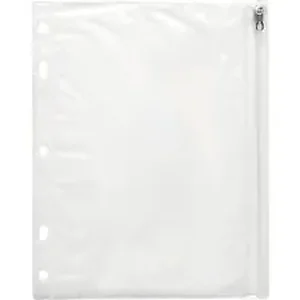 Economy binder pocket provides a convenient way to store small items that are easily lost while your work and travel. Store writing utensils, erasers, keys, money, flash drives, pockets calculators, photos, business cards and more. Soft plastic is translucent with a matte finish so you can see exactly what's inside. Secure the contents with the plastic zipper and metal slider. Seven-hole punched design fits standard ring binders.