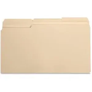File folders feature 1/3 cut tabs in assorted positions. Tabs are 1/2" high undercut for label visibility. Top corners are rounded. File folders are scored for 3/4" expansion and made of 11 point stock.