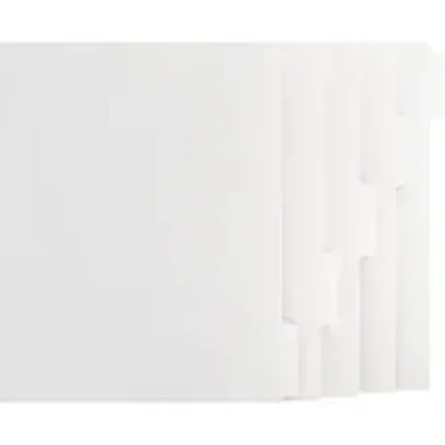 Economical, high-quality dividers with white tabs are designed for use in Xerox Docutech, 4135 and other single reverse-collated, tab-enabled printers. Dividers are single-reverse collated and feature an unpunched edge for use with any binding system. Each set contains five tabs.