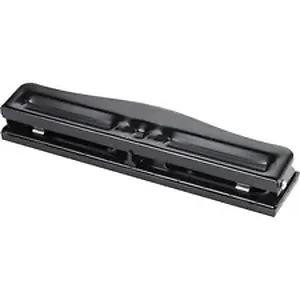 Three-hole punch drills three 1/4" holes in up to 11 sheets of 20 lb. paper or 10 sheets of 16 lb. paper. Rubber base protects your worksurface. Three-hole punch also offers an adjustable paper guide, removable paper guide and steel construction.