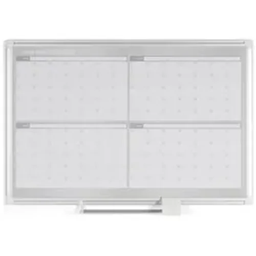 Planner board features a four-month format to keep your scheduling and planning on time and easily visible. Magnetic, Gold Ultra dry-erase surface is durably designed for frequent use. Sliding aluminum pen tray keeps your writing utensils within quick reach. Included four-corner mounting system provides a quick, easy way to display this board in a convenient location.
