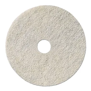 The Natural White Burnishing Floor Pads, with a diameter of 21 inches, are designed for high-speed floor maintenance. These pads provide exceptional shine while effectively removing scuff marks and scratches from surfaces.