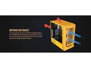 This chassis features two interchangeable front panels for personalized aesthetics. It comes equipped with two CT140 ARGB Sync cooling fans at the front and one CT140 cooling fan at the rear, optimizing airflow and cooling performance.