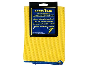 Keep your vehicle looking pristine with the Goodyear Ultra Absorbent Microfiber Detailing Cloth. This high-quality cloth is designed to clean and polish all auto surfaces efficiently. Made with ultra-soft, super absorbent material, it lifts and holds dust, dirt, grease, and spills without scratching or streaking. Safe for use on various surfaces including paint, plastic, fiberglass, metal, and glass, this versatile cloth can be used both damp and dry, eliminating the need for cleaning agents. It is machine washable and reusable, making it an eco-friendly choice. Each cloth measures approximately 16" x 16" and comes conveniently packaged on a hanging panel.