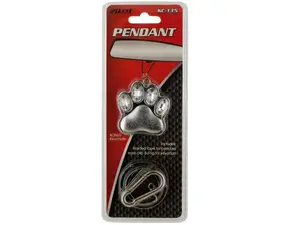Add a touch of sparkle to your keys or car with this stunning Paw Print Keychain and Auto Pendant. Featuring a jeweled silver-tone paw charm that measures approximately 1.75" x 1.75", this accessory is perfect for pet lovers. The charm includes a braided rope for use as a pendant and comes with an easy-clip and ring for keychain functionality. Perfectly packaged in a hanging clam shell, it makes a great gift!