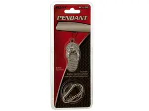 Embellish your car or keys with this stunning Sparkly Sandal Charm Keychain & Pendant. This eye-catching accessory features a beautifully jeweled silver tone sandal charm, measuring approximately 2" x 1" x 0.125". The versatile design includes a braided rope for use as a pendant and an easy-clip and ring for keychain functionality. It comes elegantly packaged in a hanging clam shell for an attractive presentation.