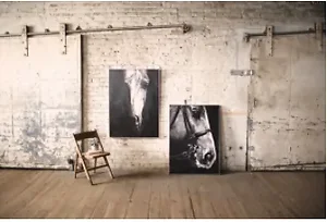 Enhance your decor with this stunning black and white oil painting featuring the front view of a horse, elegantly framed in silver. Each piece is hand-painted on a sturdy 1.25-inch thick canvas, ensuring a unique and high-quality artwork for your space.