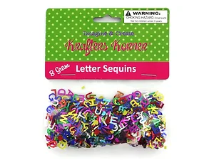 Add a pop of color to your craft projects with these vibrant metallic alphabet sequins. Perfect for invitations, scrapbooking, and school projects, each bag contains an assortment of letters in various bright colors. Weighing approximately 8 grams, these sequins measure about 8mm x 7mm, making them easy to handle and attach. Please note that they pose a choking hazard and are not suitable for children under 3 years old.