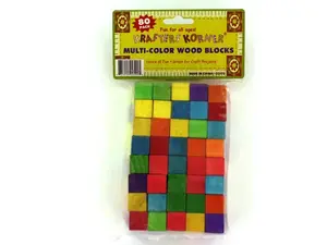 Engage your child's creativity with our 80-piece colorful wooden building blocks set! Each block measures 11/16" square and is perfect for small hands to grasp. Offered in a variety of vibrant colors, these blocks are made from high-quality wood and come packaged in a convenient poly bag with a header card. Ideal for children ages 3 years and up, they’re perfect for hours of imaginative play.