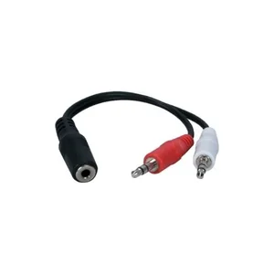 This 6-inch adapter features a 3.5mm mini stereo female connector that splits into two male connectors, allowing for dual audio output. Perfect for connecting headphones or speakers to devices.