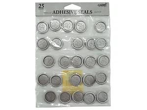 Add a touch of elegance to your invitations and thank you cards with these beautiful wax-like heart seals. Each seal is crafted from silver plastic, featuring an adhesive back for easy application. The design showcases two intertwined hearts, adding a romantic flair to your correspondence. This package includes 25 seals, conveniently offered in a sleeved poly bag with a header card. Each seal measures approximately 3/4" in diameter.