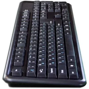 This Bilingual English/Russian USB Keyboard features a sleek black design, perfect for both home and office use. It offers seamless connectivity and intuitive key layouts for effortless typing in both languages.
